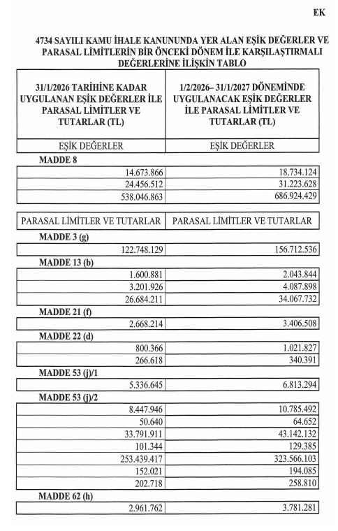 2026 Yılı Eşik Değerler ve Parasal Limitler (01.02.2026-31.01.2027) Yayınlandı